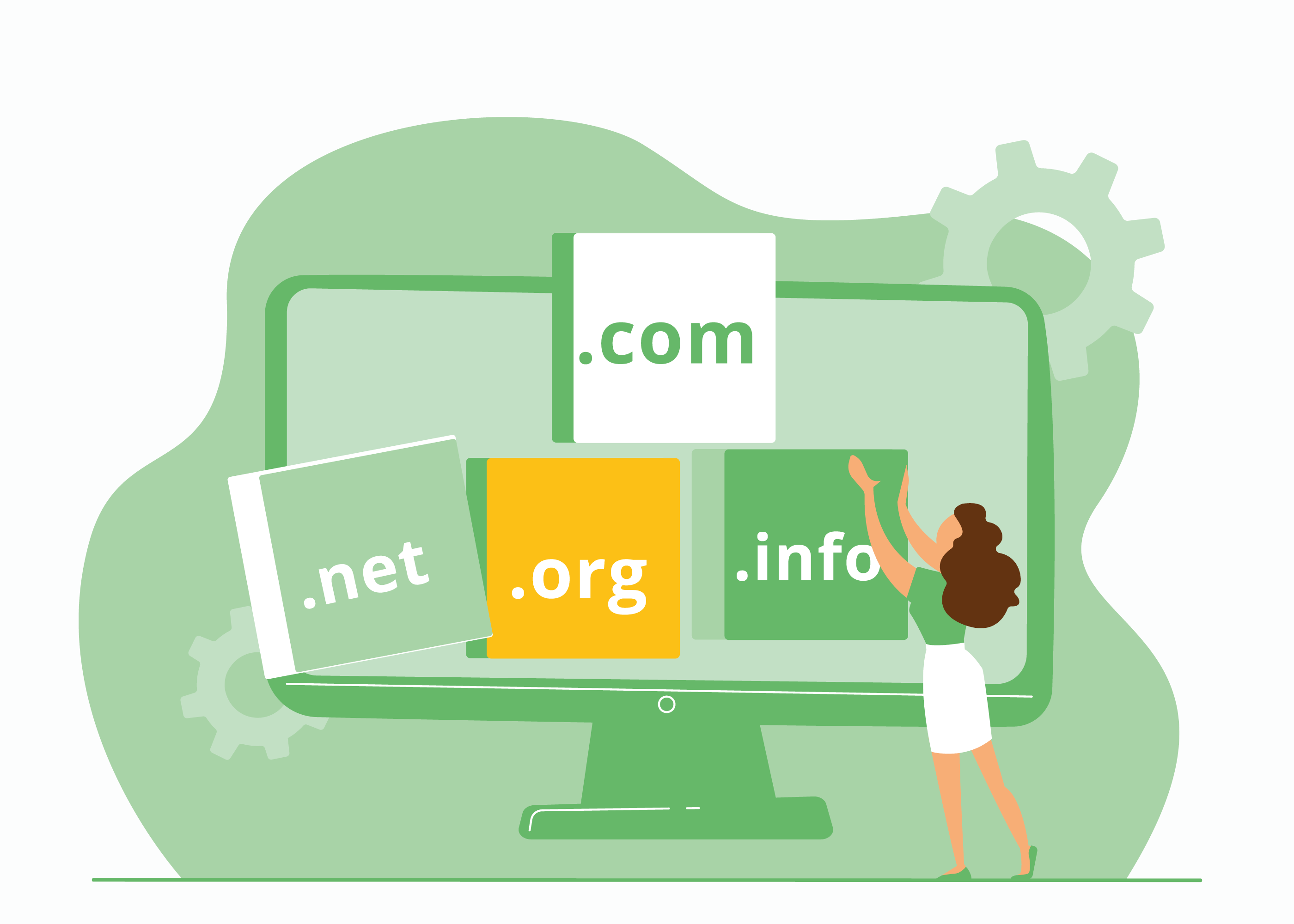 Com nomes de domínio em .com, .org, .net, por ordem de chegada.